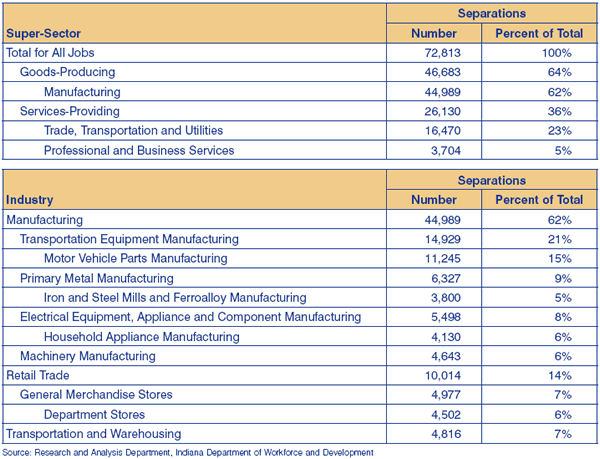 Table 2: Industry Supersector with the Highest Number of Separations Since 2000