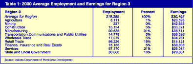 Manufacturing is the dominant industry in northeastern Indiana, accounting for 31% of average employment (see Table 1). The average income in the manufacturing sector is $38,411. For more information on employment, hours and earnings, see www.stats.indiana.edu.