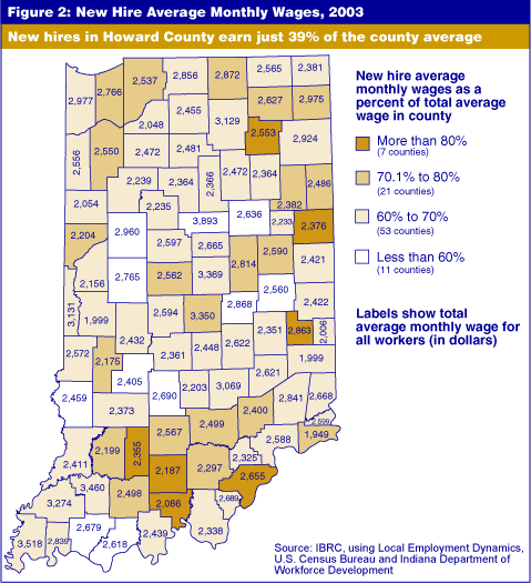 Table 4 provides an overview of manufacturing data, while Figure 2 highlights total average wages and how the wages of new hires compare in counties across the state.