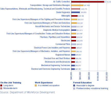 High-tech occupations, and those requiring bachelor's or advanced degrees, are increasingly common in today's workplace. But many occupations with less extensive training requirements, perhaps better suited to the new entrant or dislocated worker, also offer competitive salaries (see Figure 1). These occupations play key roles in keeping our economy ticking along and supporting the long-term visions of business and industry.