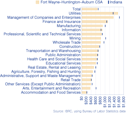 Figure 4: Average Weekly Wages in Indiana and the Fort Wayne–Huntington–Auburn CSA