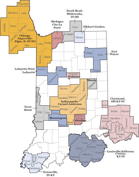 Source: Indiana Business Research Center, using February 2013 definitions from the OMB