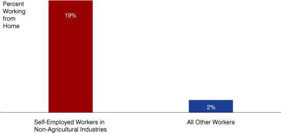 The benefits of self-employment include the flexibility and independence of being your own boss. In Indiana, self-employed workers are nearly 10 times as likely to work from home as other workers (see Figure 5).