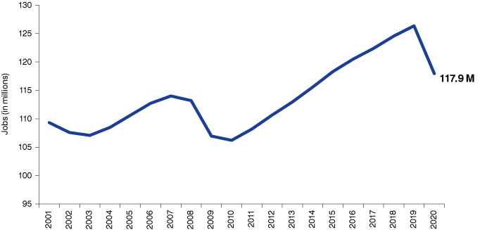 The counts are in for payroll employment losses in the pandemic year 2020, and it isn’t pretty. The U.S. Bureau of Labor Statistics (BLS) has released its annual Census of Employment and Wages data for 2020. That data series lags other more current estimates, but its value lies in being the actual count of payroll jobs.